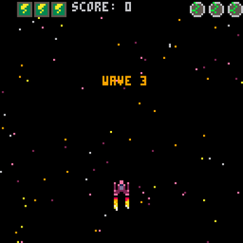 once all enemies are eliminated the game proceeds to the next wave. enemies have a chance of dropping bio goo, if you collect three bio goo then you get one spread shot. if you have three spread shots and collect three more bio goo, then you get two more lives.